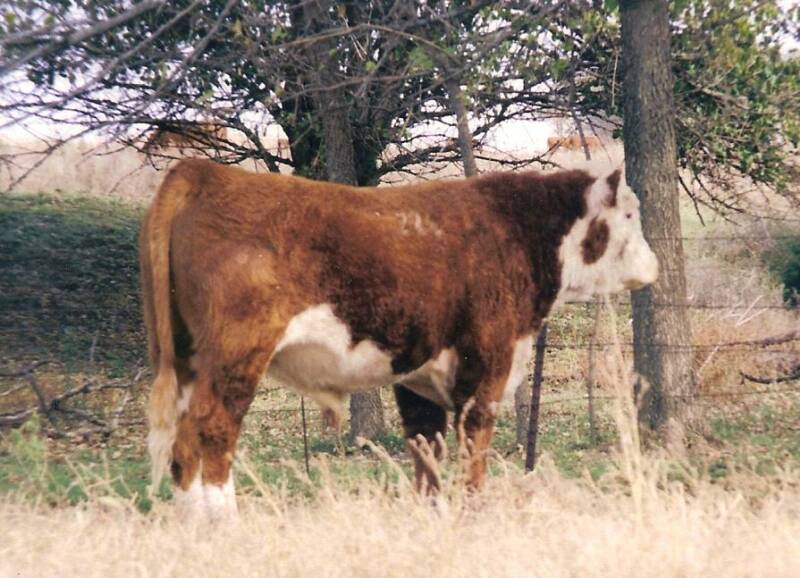Please excuse the pose. KCF Bennett 774 L153 is a very correct son of Feltons Domino 774. He is a maternal brother to H142. He has been a herd sire since late 2002, and we have more than 40 of his daughters in production at our farm. L153 is a reliable low birthweight bull with exceptional carcasss characteristics. We'll sell full-possession and 1/3 semen interest in L153 for $1,500.